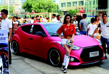 在为期两天的活动中,作为此次区域改装大赛最后一站的济南吸引了华北地区众多Veloster飞思车主及汽车改装迷的到场参与。笔者在现场看到,此次活动共设置了Veloster Turbo-GDi飞思改装车展示及评选区,世界杯互动游戏区,及改装配件展示区三个区域,其中最受瞩目的莫过于改装车展示及评选区。8辆形象各异的Veloster Turbo-GDi飞思让所有进入展区的观众都眼前一亮,从车身颜色,到车身拉花,再到车体轮毂,各位改装高手使出浑身解数,打造出了自己心中独有的Veloster Turbo-GDi飞思。