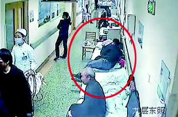 便衣民警赶到医院,悄悄跟在他身后。男子来到病房楼走廊,发现一张加床上的两名女子正在吃午饭,接着其中一名女子去扔垃圾。坐在病床上的女子随手将手机放在身后收拾东西。这是伺机已久的男子顺手将手机拿走,迅速离开。