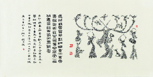 在严谨的研究风格之外,我们还可以看到,赖非先生的一部分书法作品却具有别样的风采:一直行走在田野之中,和天地相通,形成了赖非先生豪爽、大气、坦荡、坚强的性格。于是,种种束缚被彻底抛弃,本真的自我真实地表现在宣纸之上,由此创作出的“趣味书法”既充满深刻的禅意,又透露出对人生的感悟,既体现出对历史传统的深刻理解,也令人感受到可贵的创新精神,可谓现代感和深厚文化底蕴兼备的佳作。