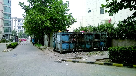 黄金时代小区内设置的垃圾大箱。见习记者 魏新丽 摄