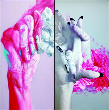 焦:在我看来,手可以创造世界,也可以毁灭世界,在我的画面中,“手”成为一种符号,粗糙的肌理感与优雅的兰花指摆型、华丽的装饰,形成了对比,留下了悬念。观者可以根据自己的经验与审美解读“手”的概念,生发出不同结果,这种过程十分有趣,也是我从电影场景中得到的启示。相比一种强烈的观念目的,我更倾向于“一千位读者有一千个哈姆雷特”,希望自己的画面能够引发更多观众的思考和探究,形成作者与观众的交流。作品有了这种思考和‘互动’,就会有阅读诗歌比读白话文更有兴味的感觉。