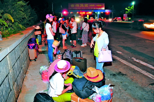 游客被“扔”在荣乌高速双岛收费站外。 本报记者 王震 摄