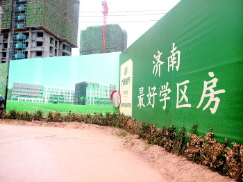 记者在万象新天小区内看到,“做济南最好的学区房”、“济南学区房样板”的广告标语随处可见。实际上,“历城二中学区房”、“家门口上名校”一向是万象新天宣传的最大亮点。