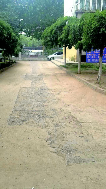 记者发现,8号楼作为紧挨刘长山路的一栋楼,楼前的路全部填充着碎石和泥土,十分难走。据李女士称,这儿一下雨就全是泥巴还有沙子,“真的很难走,路特别硌脚,外面的马路都比这小区的路好走。”李女士无奈地说。记者看到,一些老人出门时都要拄着拐杖小心翼翼地行走,路面的不平整不仅影响美观,也增加了小区居民出行的危险性。