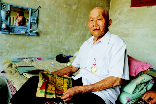 冯树山遗憾地说,“解放前的军功章在一场大雨中全部被倒塌的老房子埋在底下,只剩下了惟一一枚建国60周年大庆时国务院给他颁发的奖章。”