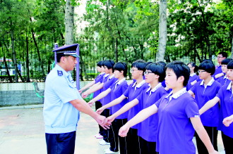 7日,荣成巡警一大队民警为荣成一中480余名新生进行为期一周的军训。巡警一大队已连续8年为该校新生进行入校前军训。