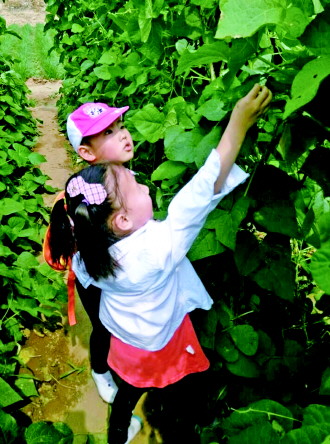 日前,环翠区竹岛办福海社区辖区内望岛幼儿园小朋友走进菜园,采摘蔬菜。该幼儿园以此种方式让小朋友认识蔬菜瓜果、亲近大自然、体验劳动带来的乐趣。