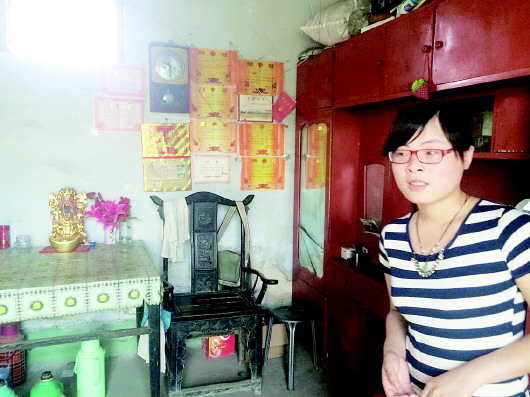 白琳琳家里很穷,但墙上的奖状很抢眼。 本报见习记者 许亚薇 摄