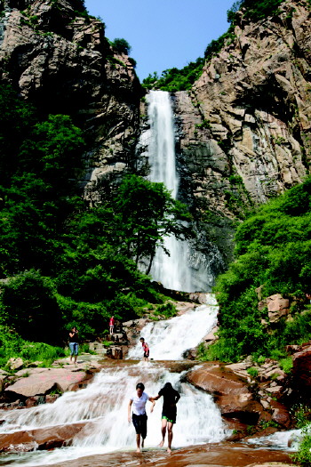 沿途游览主要景点:千年皇家御庙、道教神府,曾有10朝16位帝王在此登封诏祭的东镇庙;落差高达百丈,犹如一条玉带凌空而出,穿崖过涧,飞落而下,跌水成歌的百丈瀑布,瀑布喷珠溅玉,跌水成歌;巧夺天工、惟妙惟肖的狮子崮;鬼斧神工、如神来之笔的歪头崮;徜徉于林海奇观古松群,尽吸天地灵气,沂山森林覆盖率高达98.6%,空气中负氧离子含量高达每立方厘米11万个,为山东省之最,是得天独厚的“天然氧吧”,登顶沂山至高点玉皇项,以全新视角360°俯瞰沂山瑰丽全貌;最后乘坐新修的沂山速滑从山间密林穿梭而下,尽兴而滑,登山的疲劳顿减不少,听着同伴们惊险刺激的尖叫和欢呼声,一下子找回了童年时代的欢乐记忆。