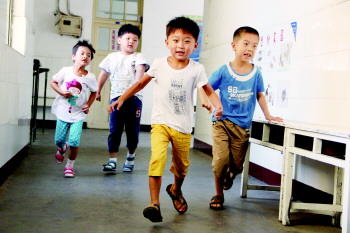 熬过了人生中第一次升学的坎儿,顺利进入小学的孩子们开心地跑向教室(资料片)。 本报记者 韩逸 摄