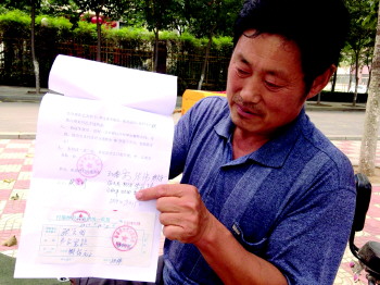 8日中午,记者见到黄崖村村民张文明,他从包里拿出两张纸,上面写着“转让协议”。“这就是今年3月我和村里签的转让协议,村里已经把村委办公室转让给我。”张文明说。