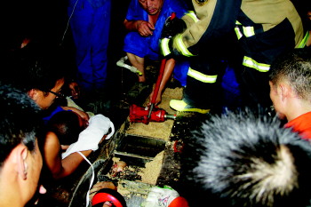 消防官兵营救酒厂工人。 本报通讯员 韩晶慧 张卫刚 摄