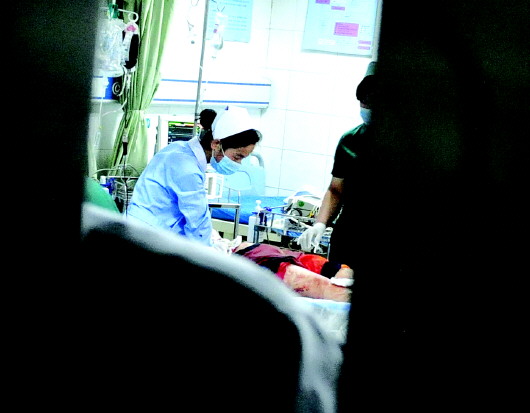 ▲医院正在进行紧急抢救。 本报记者 周青先 摄