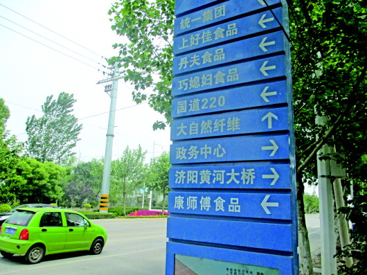 ◥济阳食品工业城的路牌上标注了食品企业的位置。