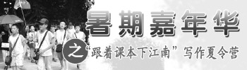 一连玩了两天,小营员们对南京和常州有了更深入的了解。9日晚上,虽然有些疲惫,在老师的招呼下,50名小营员来到会议室,接受最新鲜的作文指导。