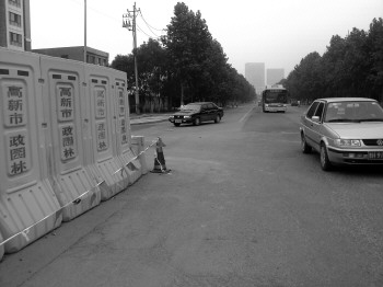 9日,红星东路和凌云路南首的丁字路口,施工人员正在施工,一片片新型的黄色塑料围挡围在周围,这种新型围挡由塑料制成,底座注水后更加牢固。这种塑料围挡减少了意外伤人的风险。目前在城区道路施工时,已使用新型围挡。