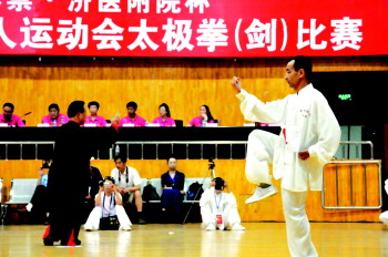 9日上午,山东省老年人运动会太极拳(剑)比赛在全民健身广场鸣锣开赛。太极拳作为历史悠久的中国传统的体育技艺,各地市代表队的选手们都在比赛中有着精彩的表现。