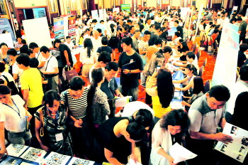 本报6月27日高招会现场人山人海.。 本报记者 李泊静 摄