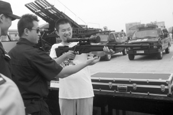 军事迷手持狙击枪过把瘾。 本报记者 王小会 摄