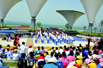 学校在海边举办诵诗活动。