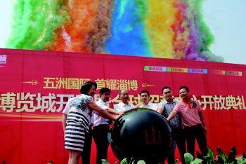 2014年7月6日,备受关注的山东五洲国际家居博览城举行了盛大的开工典礼和全球招商中心开放仪式。当天,活动现场彩旗飘扬、鼓乐喧天,沉浸在一片祥和喜庆的气氛中。山东省家具协会秘书长韩庆生,淄博市轻工行业协会会长邱万勇,广东省佛山家具协会会长梅展良,淄博市家具协会秘书长何树勋,五洲国际控股有限公司副董事长、总裁舒策丸,广东世博展览有限公司总经理余仲铭,山东五洲国际商业运营有限公司总经理钟海侠等各级领导、协会负责人、行业专家、商家代表,以及各大媒体记者、当地市民和投资者,共约上千人参加了当天的开工典礼和开放仪式。
