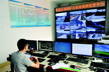 临淄区金山镇南部矿山已建立完善的视频监控平台。 本报通讯员 崔立来 摄