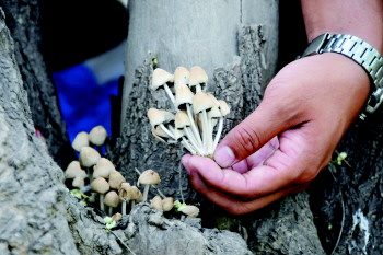 9日上午,记者根据市民提供的线索,在市人民公园的几棵大树根部发现长出了不少野蘑菇,正好有一位市民在采摘。“这些蘑菇很鲜美,采回家熬鸡汤喝格外香。”这位市民说。对于记者提醒这种蘑菇不明类型,食用很可能中毒,该市民却说:“没事,去年我就来摘过,而且一看就不是鲜艳的有毒的,吃了也没见有啥问题。”