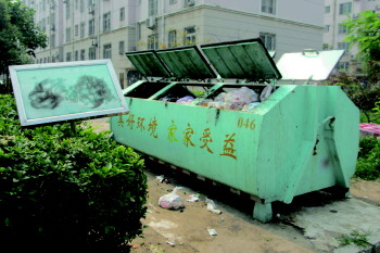 本报7月9日讯(见习记者 唐菁) “味太大了!经过那必须得捂着鼻子。”张店富贵花园小区一居民感叹,最近骑车路过小区内垃圾箱时都得“屏息凝神”,狠蹬几下自行车快速驶过。“最近小区内的垃圾箱不知道为啥,四五天才清理一次。”居民杨女士说。