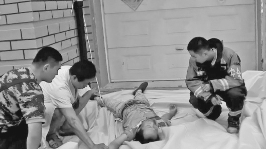 初步了解情况后,民警对葛某进行了劝导,但葛某迟迟不肯下来,两个小时过去了,葛某忽然反手抓着楼顶铁丝,背对墙体悬挂在半空中,作势要跳楼。记者在警方提供的监控中看到,悬挂在半空中的葛某挣扎了几分钟后,因体力不支从楼顶掉落,掉在楼下撑起的救护气垫上,被民警和120急救中心的人员送到青医附院,经检查,葛某没有受伤。