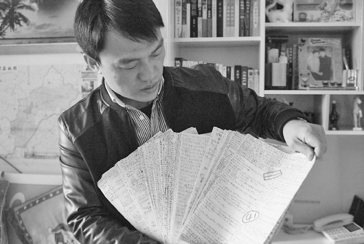 张道强向记者展示50万字小说的手稿。 本报记者 张超 摄