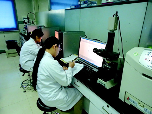 在市妇幼保健院产前筛查和诊断中心实验室,工作人员正对各种样本进行检测。