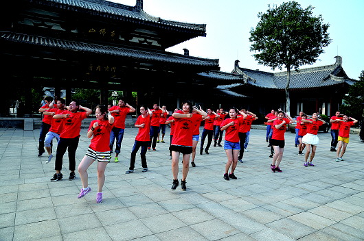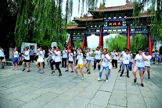 队员们在三大名胜拍摄泉城版小苹果。(资料片)