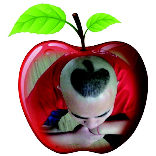 “忘了哭991”在正式拍摄前特意打造的小苹果发型。(资料片)