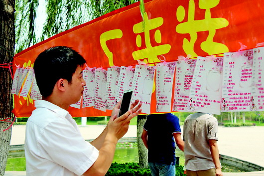 相比王先生,赶来给闺女找对象的王女士对女婿的要求要高一些,“学历要求至少本科,月收入五千以上吧,得有房,并且是全款付清,有产权,近五年内买的100平米以上的市区楼房。”