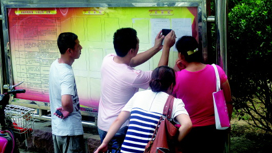 8日上午,济阳县教育体育局门口宣传栏前,不少家长拿出手机拍摄2014年学校入学的相关通知。据通知显示,城区公办学校报名时间为7月15日至18日,学生情况不同,报名地点也不同。