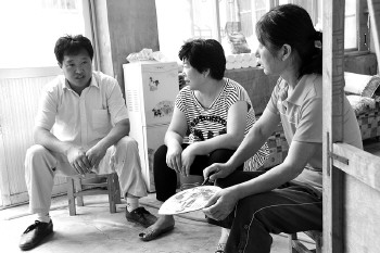 ◥董业军(左一)在冯楼村走访。