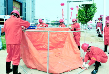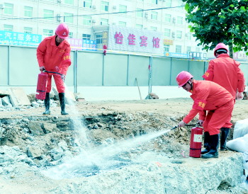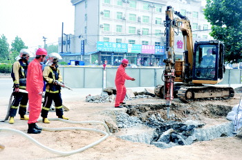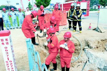 8日,中石化邹城输油处首次举办了人口密集区重点隐患段原油泄漏路面破拆演练。