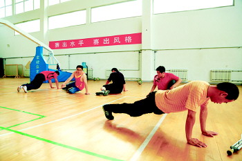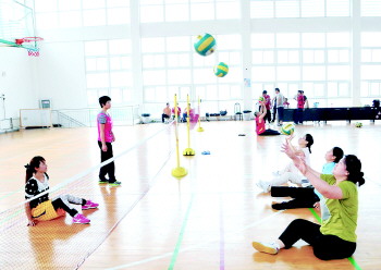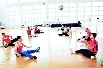 “我们平时极少参加体育锻炼,尤其是坐式排球连见也没有机会见。”男队运动员王海庚说,基础的入门训练是劳累、枯燥的,记得刚开始的一堂课上,许教练教他们练习垫球技术动作。看似简单,但自己坐起来的时候却发现,抛来的球结结实实的砸在胳膊上,就是弹不起来。也不知练了多少次,前臂都砸肿了,抛过来的球一接触到前臂,就痛的他们呲牙咧嘴,慢慢地才能找到一点感觉。许教练常说:“一定要坚持住,挺过去就没事了。”20个球以后,真的不痛了,再看看队员们的前臂已经由红变紫,原来是麻木了,感觉不到痛了。训练不到一周,我们的前臂疼痛难忍不敢触球了,是训练基地的领导和教练耐心的疏导,细心的说服鼓励我们一定要坚持下去。