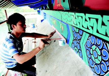 “从打地仗开始,就需要一麻五灰的细致工艺,然后是一遍遍刷上不同配比的油料,最后才能进行彩绘,即使是很小面积的建筑彩绘,前前后后也需要十几道的工序才能完成。”油漆彩绘工程队队长王明亮说,干油漆彩绘的活不容易,除了冬季停工外,其他季节每天要干8个小时,期间需要精神高度集中,原材料的配比、油料熬制的火候、彩绘的粗细轻重等,每个步骤都有非常精细的要求。