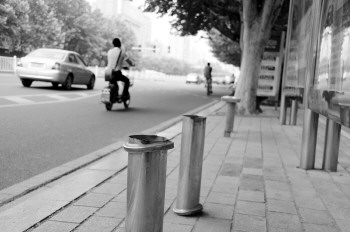 10日,在潍坊市福寿街东方路路口西侧,一处公交站的凳子被人毁坏。在现场,公交站台上的两个凳子一个已经被毁坏,只留下了两个柱子,给等车的乘客造成了一些不便。 本报记者 孙国祥 摄影报道