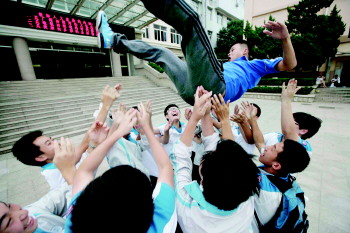 10日,在青岛第十五中学,高一10班的同学们将班主任张德高高举起,抛向空中,庆祝即将到来的暑假。据介绍,自11日起,岛城3万余名高中生将迎来属于自己的暑假时间。暑假从7月11日至8月30日,8月31日报到,9月1日正式开学。