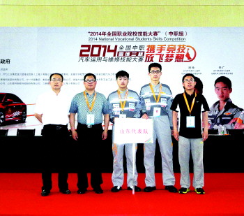 ◤汽车专业学子在2014年全国职校技能大赛中斩获两银。
