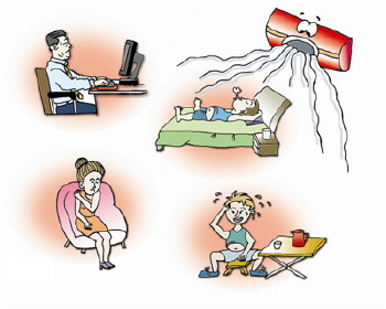 据东港区人民医院内科医生张立平介绍,在酷暑季节,我国基层医院门诊接诊的病人中,约有30%~50%是“空调病”患者。“空调病”也叫“空调适应不全综合征”或“冷房病”,是因使用空调不当而致的环境性疾病。空调在给人们带来欢乐和清凉的同时,使用不当又会给人们的身体造成很多不适,例如头痛头晕、口干舌燥、咽喉肿痛、鼻塞流涕、皮肤黏膜干燥、不同程度的手脚麻木、肢体瘫痪、口眼歪斜、腰酸背疼、疲倦和肠胃不适等,这些症状又常被人们归纳为感冒、过敏、风湿痛、胃肠炎、面神经瘫痪和中风等疾病。