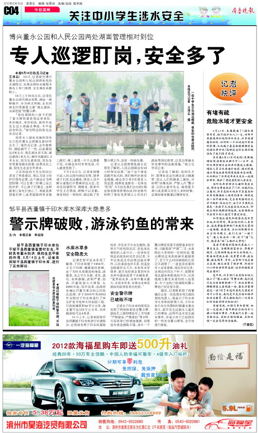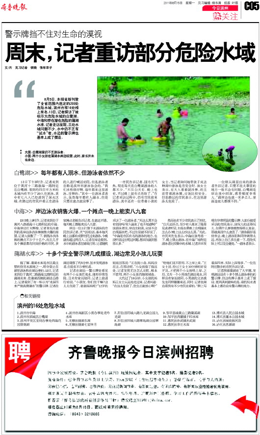 自今年入夏以来,气温高热,各地学校也陆续进入放假期,市民在危险水域游泳的现象逐渐增多,险象就此发生。为了确保游泳安全,防止溺水事故的发生,团市委、齐鲁晚报今日滨州联合向全市发出倡议如下: