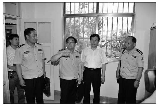 张家洼公安分局领导及市人民医院领导查看警务室建设情况。