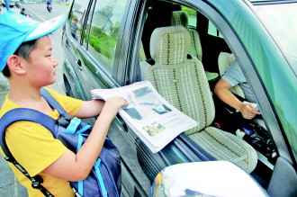 天蒙蒙亮的时候,我和邻居家的姐姐就一起坐车去华联领取报纸。我们把报纸折叠好后,就急匆匆地前往居民区,想找个人多的地方卖报,不过销路不是很好。沉沉的报纸、越来越高的太阳无不让人心急如焚,我便拉着姐姐坐上了去火炬大厦的车。我觉得那个地方比较偏僻,不会有小朋友去那里卖报的,想来个“先下手为强”。结果没想到的是,卖报的人没有,可买报的人也没有啊!