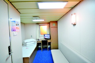 据“生生2”轮船长张保进介绍,“生生2”轮总长165米,型宽24米,型深7.9米,拥有3层旅客甲板,最大载客达2160人,船上设有贵宾舱、一等舱、二等舱、三等舱等多种不同等级的舱位,能满足各类旅客需求;拥有两层车辆舱,共约1100米长车道,载重量接近5500吨,能够承载的最大单车载荷可达120吨,车辆限高4.86m,是渤海湾航线目前载货能力最强大的客滚船。“‘生生2’轮还配备了减摇鳍和侧推器,每一舷减摇鳍是12平方米,在遇到风浪比较大的时候,便会启用,这将极大地减缓船舶横摇,提高船舶的安全性和舒适性。”张保进说。
