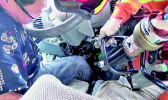 10日16时57分,文登圣海路张家产镇大官庄路段发生车祸,一辆货车撞上电线杆,车头严重变形,司机右腿被卡。文登消防开发区中队出动两车、14人赶往救援,操作液压扩张器,经过10余分钟,司机被救出。