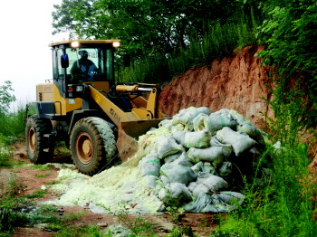 在公安与环保部门的监督下,废渣供应企业对遗弃的废渣进行处理。 本报通讯员 公为进 摄