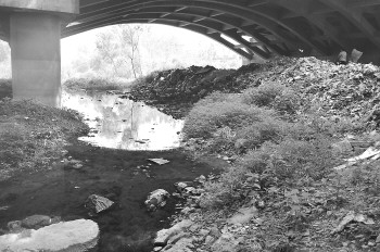 在泰安侯家店村南铁路桥下,卸甲河岸边堆积着不少垃圾。 本报记者 路伟 摄